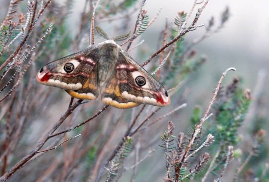 These large moths can have a wingspan of up to 8cm. They emerge from their cocoon in late March, and then spend a busy 6 weeks mating and laying eggs. Emperor moths are the only moths to have an ‘eye spot’ on each of their four wings. These day-flying males are a dusky orange and have spectacular antennae that resemble feathers. Males use their antennae to track down females by detecting the pheromone scents released by the females. The females, although typically larger, are a pale blue and do not have the fancy head gear. Caterpillars hatch in May and feed during the summer before spending winter in their protective silk cocoon. The mature caterpillars are bright green with yellow, or sometimes pink, spots in black hoops.