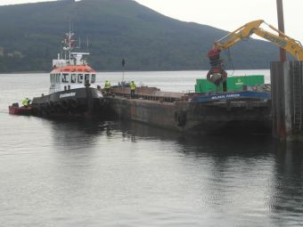 In 1897 the first motor car arrived on Arran. It was loaded onto the paddle steamer, (there was room for a maximum of 2), in the area of the paddles, via a couple of timber planks that were placed in such a fashion so that the car was loaded and the transfer of weight tipped the planks onto the vessel or pier. This practice was in use for many years.