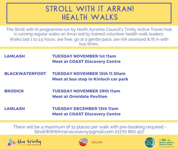 Here is an update from Arran Eco Savvy on the Stroll with It Arran! programme for the winter: