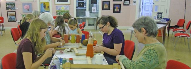 A weaving workshop at the exhibition in Lochranza. Image credit: AVA