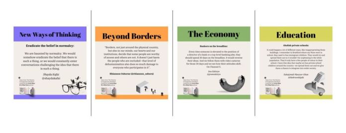 This year, perhaps now more than ever, we need a taste of what policymaking underpinned by the radical imagination looks like. Recognising how extraordinary and powerful this collection of possibility-infused policies from an eclectic mix of people from all around the world (including Brian Eno, Rutger Bregman and Kate Raworth – ecologists, renegade economists, artists, prison abolitionists, somatic trauma therapists, printmakers, politicians, disability activists, rewilding practitioners, prison abolitionists and so many more) I felt it was important to collect them all in one accessible place. And so ‘The Ministry of Imagination Manifesto: an imagination-based manifesto for times that need one’ was born. We’ve painstakingly edited together all the policies, under subject headings, and the whole thing has been beautifully designed by Capella Andrean of The Creative Bloc.