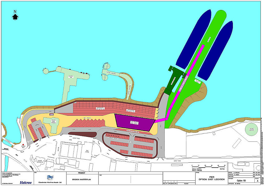 CMAL will be holding a further public meeting in Brodick Hall at 7:30pm on Wednesday 6th November, to discuss the final plan for the new pier and ferry terminal in Brodick. A copy of the latest plan shows that the bus stances have moved closer to the terminal building, allowing a lot more space for waiting passengers and the disabled parking spaces have moved to the main car park immediately opposite the main entrance to the terminal building. Also the “dog-leg” in the passenger access system has been straightened out.